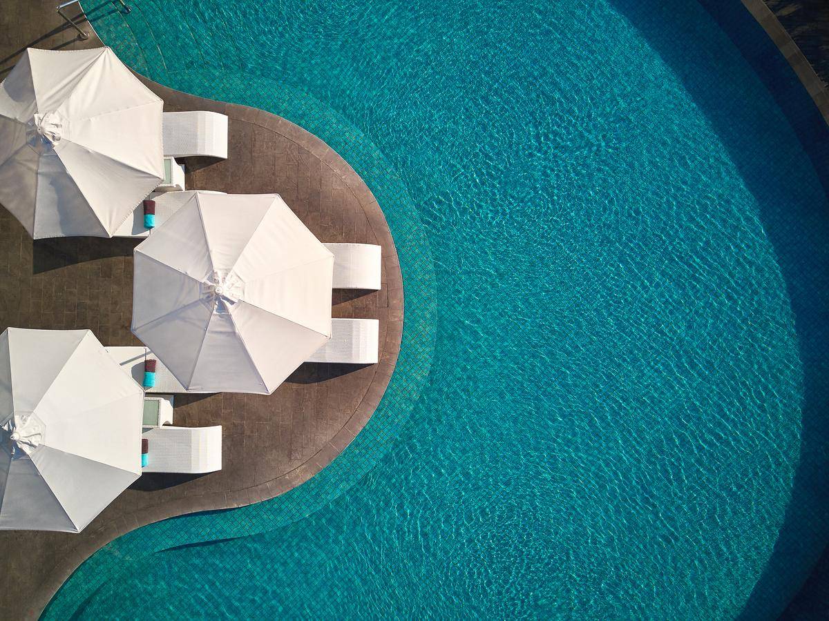 → Бассейны: один открытый бассейн для взрослых, один открытый бассейн для детей (полотенца, шезлонги, зонтики)