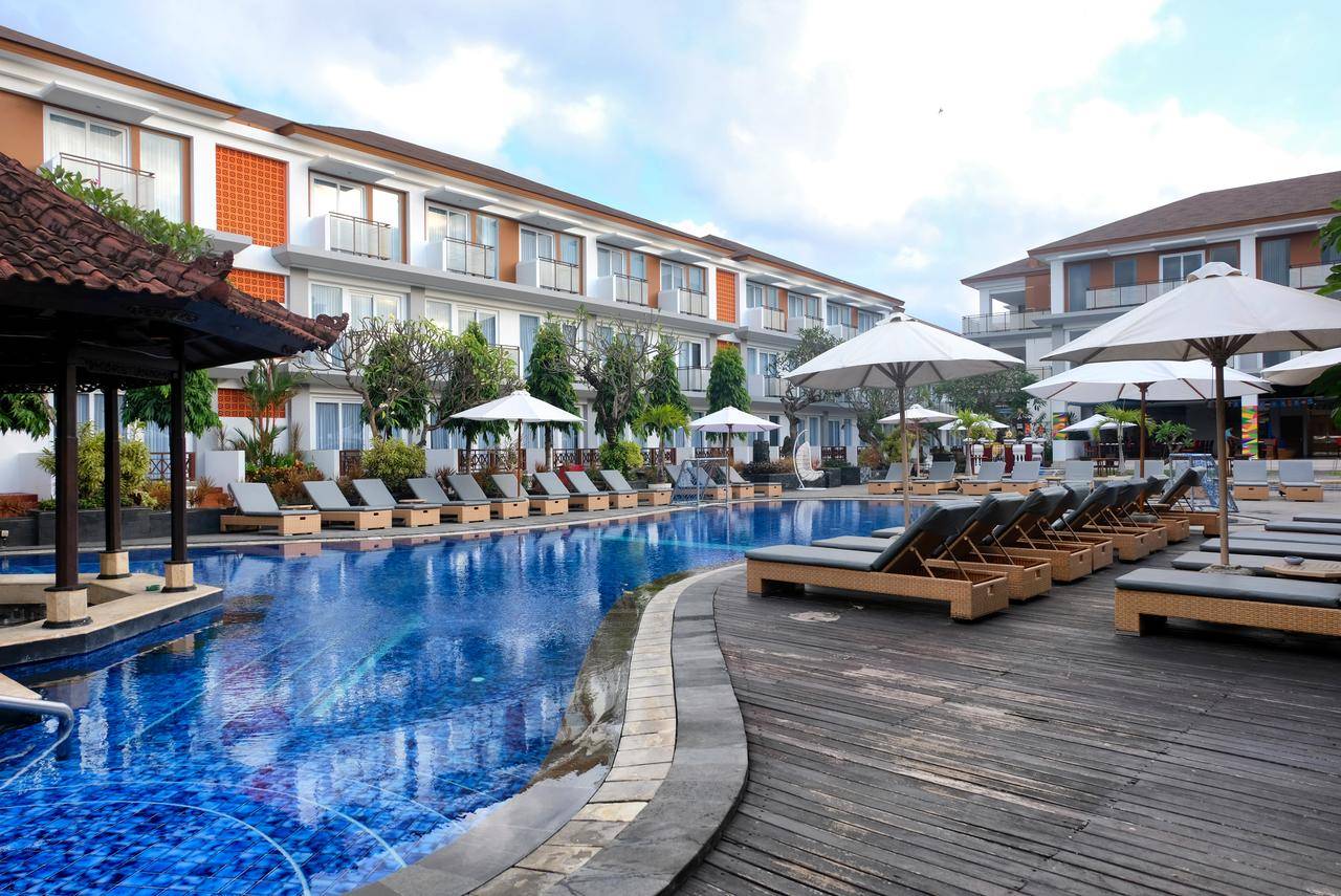 Отель Sol House Bali Kuta расположен через дорогу от торгового центра Kuta Square. До пляжа Кута 5 минут ходьбы. К услугам гостей номера с видом на тропический сад, бассейн и ресторан при отеле. В лобби отеля предоставляется бесплатный Wi-Fi. Современные номера отеля оформлены в ярких тонах и оснащены кондиционером, телевизором с плоским экраном и мини-баром. С собственных балконов открывается вид на сады или бассейны. В ресторанах отеля звучит живая музыка. На территории работает сувенирный магазин и экскурсионное бюро.